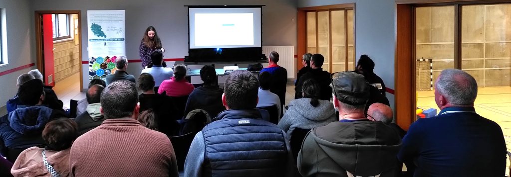 Comme d’habitude, le GAL a dressé un bref tableau du partage d’électricité (le contexte du marché wallon, en quoi consiste le partage, comment partager de l’électricité) et a expliqué quel accompagnement il pouvait proposer gratuitement.