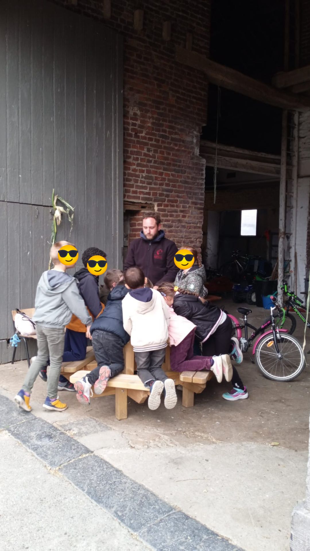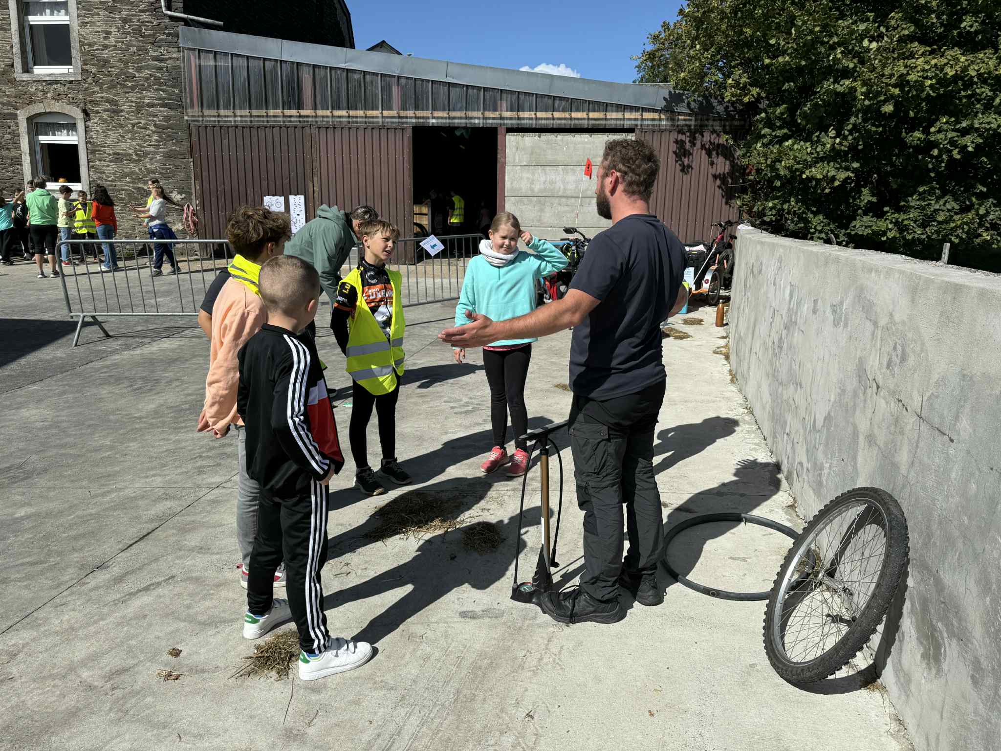 Merci à Raymond d’avoir transporté les enfants dans sa remorque tracteur ;