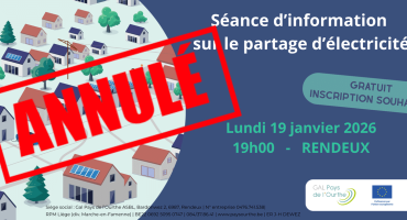 Read more +19 décembre 2025 By annegillard in Énergie, Energie, HomePartager de l’électricité : séance d’info tout public – 19.01.2026 à Rendeux