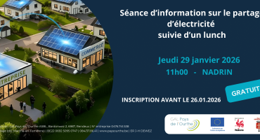 Read more +12 janvier 2026 By annegillard in Energie, Énergie, HomePartager de l’électricité : séance d’info pour les entreprises – 29.01.2026 à Nadrin